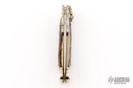 The Guardian by Hubertus Knives features a satin finish blade, nickel silver guard, bolsters, release, and pins, stag scales, and brass liners. Smooth, quick opening. Strong lockup. Has a couple light scratches, otherwise excellent condition.