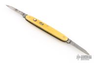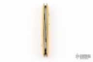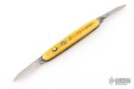 This double auto by Schrade features two blades both with their own push button and safety. The handle has celluloid scales, brass liners and steel backspacer. Has some scratches and pitting, otherwise good condition for its age. US Patents Dec 21.09, Sept 13.10, and June 6.16.