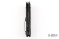 This Osborne designed Rift from Benchmade features a black coated clip point blade and sculpted black G-10 scales, black stainless steel liners and tip up reversible clip. Includes original packaging and paperwork. Has some scratches and a nick at the tip of the blade, has some scuffs on the clip, otherwise good condition.