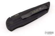 This TR-3  SWAT from Pro-Tech Knives features a drop point black finished 154CM blade with swedge. The handle has a black aluminum handle with a matching stainless steel tip up clip. Comes with original box and papers. Excellent condition. #054