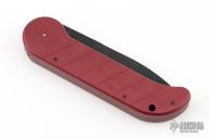 This Black Knife by Paragon features a black drop point blade with swedge. The handle is comprised of red anodized machined aluminum. Lanyard hole in pommel. Has some light scuffs, otherwise excellent condition.