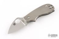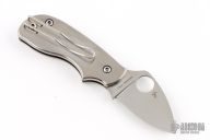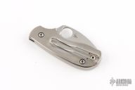 This Squeak Slipjoint from Spyderco features a satin finished blade with notched thumb ramp and thumb hole. The handle is comprised of a titanium frame over stainless steel spring. Steel wire tip up pocket clip is reversible. New condition. Includes original packaging and papers.
