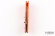 This Native Chief takes the time-tested design of the original and stretches it out to create a longer and slimmer profile with even more cutting performance. Orange G-10 scales and a satin full-flat ground blade solidify the design. Textured G-10 handle scales are backed up by a precision-machined lockback mechanism. 4-position pocket clip allows for fully ambidextrous tip-up or tip-down carry. New condition. Comes with original box and papers.