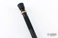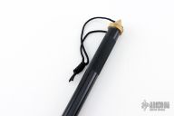 This 48" Black aluminum survival staff with pointed brass skull crusher butt with compass. This one has a brass coupler with a rubber end that can be used as a staff, or removed and the knife added to the end to make a spear. New condition.