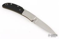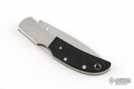 This knife by Al Mar features a satin finished blade with nail nick. The handle has stainless steel bolsters, black linen micarta scales, brass liners, and a stainless steel backspacer. Has light scratches, otherwise good condition.