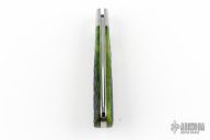 This knife by Cool-Dragon features a mirror polished blade with fileworked spine and a single thumbstud. The handle has a fileworked stainless steel bolsters, abalone scales, fileworked stainless steel liners and backspacer. Nice detent, blade seating and lockup. Has a few light scratches, otherwise excellent condition.