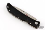 This Falcon Classic by Al Mar features a satin finished blade with nail nick. The handle has black paper micarta scales, brass liners, stainless steel backspacer. Has some light scratches, excellent condition otherwise.