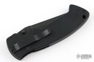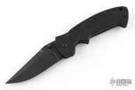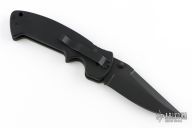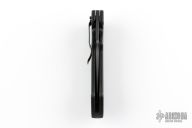This Kasper by Crawford Knives features a black blade with swedge and dual thumbstuds. The handle has double black linen micarta scales, black titanium liners, tip down black stainless steel clip and backspacer. Nice detent, blade seating and lockup. Excellent condition. Comes with a zippered case.