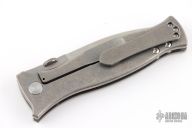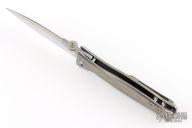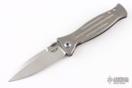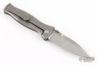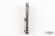 This MK3 by Les George features a satin finished blade with false top edge and knurled thumbdisc. The handle has a stonewashed titanium frame with 3 milled fullers and a titanium tip up clip. Nice detent, lockup and blade seating. Comes with maker's zipper case and extra clip. Excellent condition.