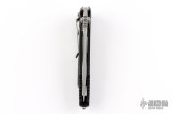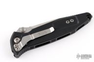 This Socom Elite manual linerlock folder by Microtech Knives has a stonewashed blade with notched thumbrest and dual thumbstuds. Has a black aluminum handle with non-slip inlays, tip down blasted stainless steel clip. Serial number 17537 and dated 04/2024. Comes with original box and papers. Excellent condition.