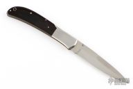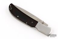 This Eagle Talon Folder by Al Mar features a satin finished blade with false top edge and single thumbstud. The handle has stainless steel bolsters and black/brown paper micarta scales and stainless steel backspacer. Has some light scratches, otherwise excellent condition.