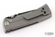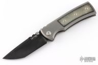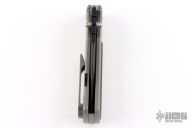 This Chaves Ultramar Redencion Tanto features a black PVD finished blade with the Chaves logo, dual thumbstuds, and notched thumbrest. The handle is made up of a titanium frame, with black canvas micarta inlays, and skull pocket clip (positioned for tip up carry), and a matching titanium backspacer. Has overtravel stop. Blade is centered when closed, and locks up with no play. Has light scuffs and scratches, good condition otherwise. Comes with original box.