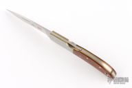 This Hawk by Al Mar features a satin finished blade with nail nick. The handle has stainless steel bolsters, cocobolo scales, brass liners, stainless steel backspacer. Comes with original box. Excellent condition.