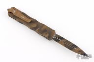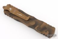 This Dirac Delta OTF automatic by Microtech features a D/E camo finished blade with a standard edges. The handle has a camo finish aluminum with stainless steel tip down clip and matching hardware. Serial number 178 and dated 01/2023. Comes with original box and papers. Has a couple light scuffs, otherwise excellent condition.