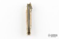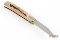 This Lever Lock Automatic by Hubertus Knives features a polished clip point blade. The handle is comprised of nickel silver bolsters and lever with stag scales over brass liners and steel backspacer. Has some light scratches, otherwise excellent condition.