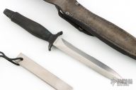 The Mark II is one of the best selling knives of all time. First introduced in 1966, this tactical knife is serialized for collectors. This one has a satin finished hand ground double edged partially serrated blade, .243" blade stock and .940" blade depth, hidden tang construction with a black aluminum handle. This knife is Serial #A7742S and was made in 1982. Comes with a black leather sheath and original sharpening steel. Has some scratches, otherwise good condition.