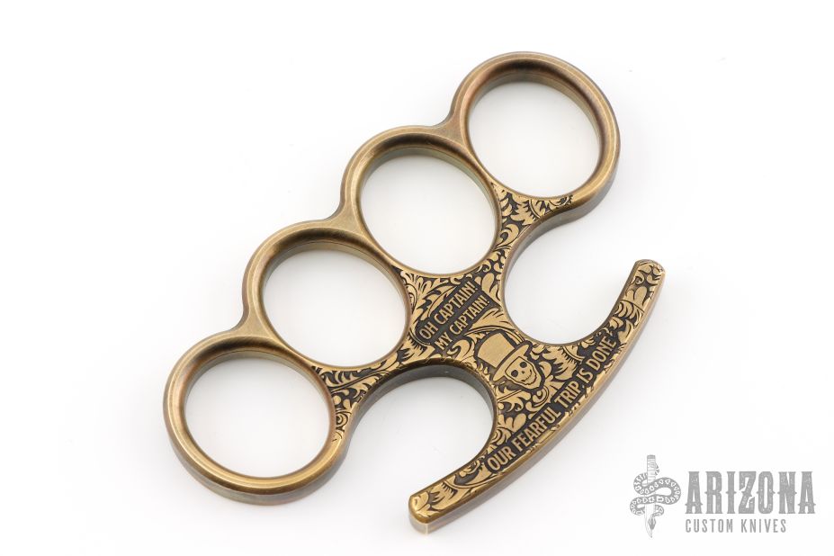 The Gold Point Lincoln comes straight from Ryan's shop, from the depths of the GPF R&D Rapid Prototyping and Hammock Devision. The Lincoln is a historic Knuckle design patterened after the set Abe Lincoln's personal bodyguard used to carry around. The generous finger hole sizing keeps it in place for a wide variety of hand sizes, oversized enough to keep your fingers safe but allow the right amount of control. Overall streamlined design while still making sure the message is heard loud and clear. One of the changes on the Lincoln is that since they come from the GPF R&D PRHD, this allows smaller batches of them to get made on the quick in small batches from different materials and with unique motifs and finishes!