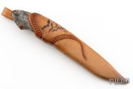 Sheath: The knife comes with a sheath in traditional Nordic style. The sheath is decorated with some painted bats. The sheath is colored with air brush in brown and black colors.