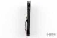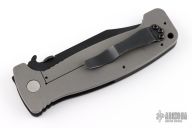"The CQC-12 is brutishly strong, has a bank vault .125 inch thick lock, and feels like a fixed blade in your hand. I don't think you can get much tougher or stronger than this one. This is not a general utility knife. This is an Abrams Tank with sharp edges. The knife features a double V grind. The handle has the look and feel of the original bayonet and is built for the most extreme use." This knife has a black blade with thumbdisc, wave feature and notched thumbrest. The handle has a black G-10 and blasted titanium frame with black stainless steel tip up clip. Has a few scuffs, otherwise excellent condition. #0168 and dated 2004