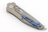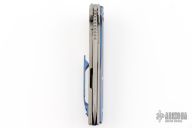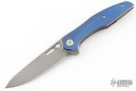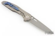 This Torrent by Millit Knives features a acid/tumble finished blade with a notched thumbrest and flipper. The handle features an anodized and bead blasted titanium frame with a matching tip up pocket clip. Includes original box and COA dated 12-20-18. Has a few light scuffs and scratches on the clip and blade, otherwise excellent condition.