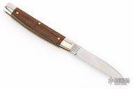 This knife by Great Eastern Cutlery features a satin finished wharnecliffe blade with a nail nick.  The handle has nickel silver bolsters with cocobolo covers over brass liners.  Steel backspring.  Comes with original packaging. Excellent condition.