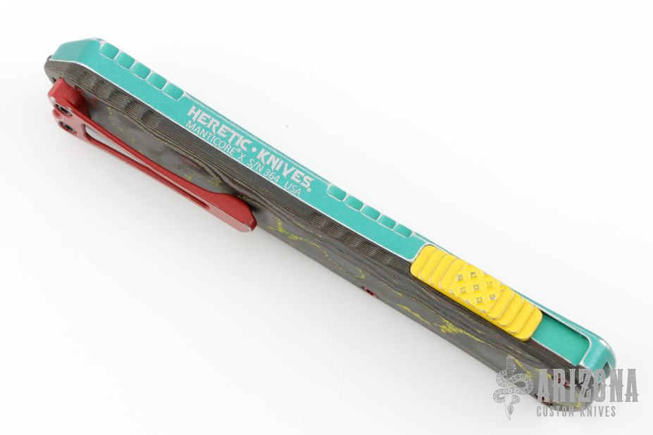 The Manticore X is our latest OTF offering and the largest of the Manticore Series. This knife is 100% USA made and assembled. Backed by our lifetime warranty you can rest assured that this OTF will last. Silky smooth one handed deployment and retract are standard operations of our Manticore. The X features a integrated lanyard hole and hardened steel glass breaker and deep carry clip.