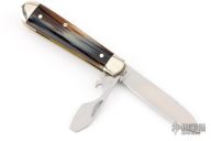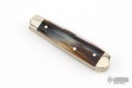 The Boker Swell-End Jack is another classic knife shape, which was to be found on European farmers' markets and in the typical general shops of American settlements since the turn of the century. The handy pocket knife owes its name to its traditional design, which becomes noticeably wider towards the end of the handle, thus shifting the knife's center of gravity backwards. In addition to the satin-finished main blade of ice-hardened N690 with 60 to 61 HRC, the knife is also equipped with a cap lifter that can also be used as a screwdriver. The blade has a modern ricasso and is opened by nail nick. The operating safety of the slipjoint is increased by a 90-degree arrestor during opening and closing. The handle scales are made of deceptively realistic-looking synthetic horn, which combines the low maintenance and robustness of a synthetic material with the look of a natural material. The characteristic bolsters are made of nickel silver. This knife is handmade in the Boker Knife Manufactory in Solingen.