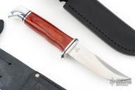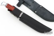 This Model 212 Fixed Ranger by Buck Knives features a satin finished clip point blade with false top edge, .122" blade stock and .885" blade depth, hidden tang construction. The handle has an aluminum guard and butt, and a laminated wood grip. Comes with 2 original black leather sheath and box. Excellent condition.