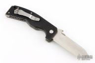 This is the Collector Associations HMMV-K by Emerson has a tanto zero grind blade and black G10 scales. Heavy titanium liners with heavy glass break on butt. Thumb disk and Wave feature. Serial #029. Excellent Condition. Very Rare!