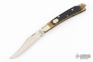 This Lockback by AG Russell features a satin finished blade with nail nick. The handle has nickel silver bolsters, jigged bone scales and brass liners. Has a couple light scratches, otherwise excellent condition.
