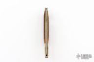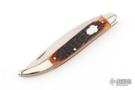 This Toothpick by AG Russell features a satin finished blade with nail nick. The handle has nickel silver bolsters, jigged bone covers with a nickel silver escutcheon, brass liners and steel spring. Excellent condition.
