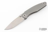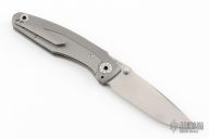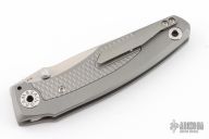 This Knife features a stonewashed blade with dual thumbstuds and a notched thumbrest. The handle features a tumbled titanium frame with a matching tip up pocket clip. Includes a padded zippered case and COA. S/N 118. Excellent Condition.