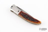 "Ever since I can remember I have had a fascination with knives. My grandfather gave me my first pocketknife when I was 5, and it was that moment that did it. I started making knives by taking apart my mothers kitchen knives. My parents thought that there was something "wrong" with me because I had a fascination with sharp objects. That all changed when I took them to a local knife show and showed them a whole room of people interested in knives. I seriously began making knives when I was 16. I have been making knives for over 25 years. For the past 10 years I have mainly concentrated on making folding knives and automatics. I mainly concentrate on making one-of-a-kind folding knives of my own design, but I do occasionally make a few fixed blades. I specialize in unique file work patterns, and I also do simple carving and some of my own sheath work. For steels I mostly use Damascus, but also use 154CM, CPM154, D-2, 1095, W-2 and others. Handle materials include Exotic Woods, Stag, Pearl, and various types of Ivories including Elephant, Mammoth, and Walrus. As far as knife builds go, I think I am going to concentrate on building more elaborate autos as well as converting some of my older designs into autos. I appreciate the challenge of making an auto, and it keeps knife making exciting for me.”