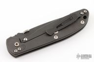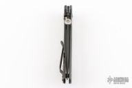 This Firetac by Hinderer features a battle black finished spanto blade. The handle consists of textured black/grey G-10 and battle black titanium frame. The pocket clip is titanium and reversible. The thumbdisc is removable; there is a lanyard hole at the butt. Excellent condition. Comes with original box and extra hardware.