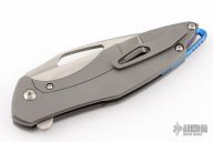This Arius by Koenig knives features a bead blast finished blade with thumbhole and flipper. The handle has a bead blasted/patterned titanium frame with a titanium tip up clip, and anodized titanium backspacer. Has ceramic bearings and a ceramic detent ball. Nice detent, lockup and blade seating. Comes with original box and COA May 17, 2021. Gen4B5. Has a few light scuffs, excellent condition otherwise.