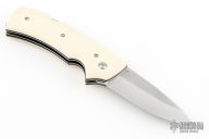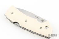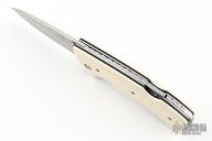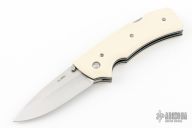 This lockback folder by David Clark features a hand rub satin finished blade with a single thumbstud. The handle features white G-10 scales over 410 stainless steel liners and fileworked backspring. New from maker!