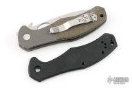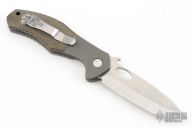 This H&K Prototype CQC-10 by Ernie Emerson features a satin finished blade with a thumbhole, notched thumbrest and wave feature. The handle is composed of black G10 scales and backspacer, titanium liners, black tip up stainless steel pocket clip. Excellent condition. Comes with original box and papers.