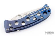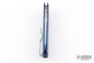 The PITS (Pie in the Sky) Folder is based on Mike Read's popular non-locking folder, which has been designed to comply with British knife laws. It has a full-flat ground N690Co steel clip point blade and precision-machined blue skeletonized titanium handle that aids in providing texture for grip. In addition, the handle features integral split spring arms to form the knife's unique slip-joint mechanism. Mike Read designed this knife to be a tough, hard-use folder and the combination of the lower blade guard with the integral spring act to prevent unintended closure. The PITS Folder includes Spyderco's deep carry wire clip for reversible tip-up carry.
