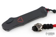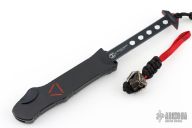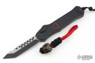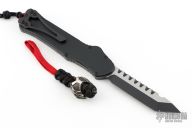 This Hydra Predator by Heretic Knives (Anthony G. Marfione) features a black tanto blade. The handle has a black/red aluminum frame, stainless clip, stainless steel and matching charging handle. Comes with original box, card, and bead. Excellent condition.