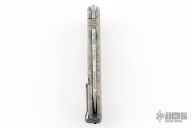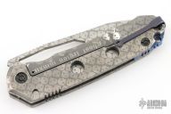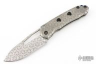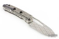 This MM Ghost Legion by DC Munroe features a tumble finished recurve blade with thumb hole and notched thumb rest. The handle has a tumbled titanium frame, anodized titanium backspacer and pocket clip that has been textured. Nice lockup, detent and blade seating. Comes with COA, zipper case, and bandaid. "MM-95". Excellent condition.