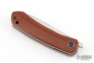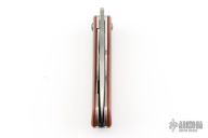 This Jellyfish front flipper features a hand brushed finished sheepsfoot blade with notched flipper tab. The handle features micarta covers and black hardware. It has satin finished titanium liners, carbon fiber backstrap, and lanyard hole in pommel. Comes with a zipper case and original accessories. Excellent condition.