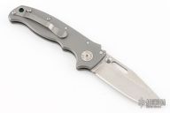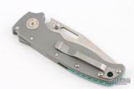 The AD20.5 by Demko Knives features the impressive Shark Lock and an even more impressive price point. The Shark Lock mechanism is situated on the spine of the knife and operated with a ramp-like ‘fin’, allowing you to flip the blade open and closed at will. It's probably the best thing about this knife and design, how quickly it can be deployed and ready for action. It acts as a blade launcher and a little wrist action is all it needs. Comes with original box and extra clip. This one has a stonewashed blade and bead blasted titanium handle. Includes original standoffs, currently sporting a green anodized notched titanium backstrap. Excellent condition.
