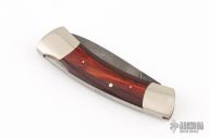 This Lockback by Hoffman Cutlery features a Charlton LTD Damascus blade. The handle has dovetailed nickel silver bolsters, laminated wood scales, nickel silver liners and a stainless steel backspacer. #032 on the lock release. Comes with a velcro case. Excellent condition.