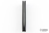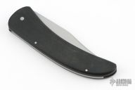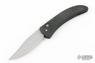 This Side Opening Auto by Huck Wofford has a bead blast finished clip point blade. Handle is black micarta with stainless button and fittings. Has some scuffs and scratches, great condition otherwise.