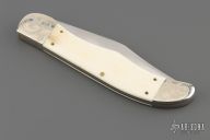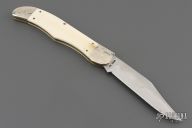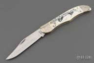 This Slipjoint by Case features a satin finished blade with nail nick. The handle has nickel engraved silver bolsters, scrimshawed bone covers, brass liners and stainless steel spring. Has some patina, otherwise Excellent condition. #246 on the blade.