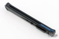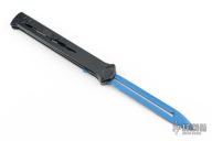 Joining the Estiletto OTF lineup is this fantastic model with a USA cutout on the black anodized aluminum body with black hardware/clip and a blue coated dagger blade.