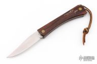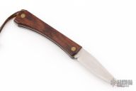 This Flic Flac auto by ERN features a satin finished blade. The handle has wood scales and steel liners. Pull the lanyard at the butt to fire the knife. It closes in the same fashion. Has some scratches, otherwise good condition for its age.