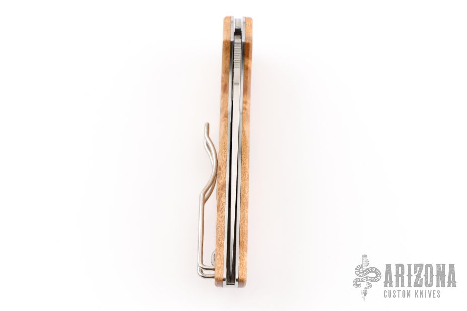The immensely popular Chaparral series celebrates a diverse range of handle materials by incorporating them into the same, sleek gentleman's folder format. This stunning expression of the Chaparral showcases genuine birdseye maple scales and the dramatic grain pattern characteristic of this material. All other features are consistent with the Chaparral platform, including a full-flat-ground CTS® XHP® stainless steel blade, stainless steel liners, a sturdy back lock mechanism, and a reversible deep-pocket wire clip.