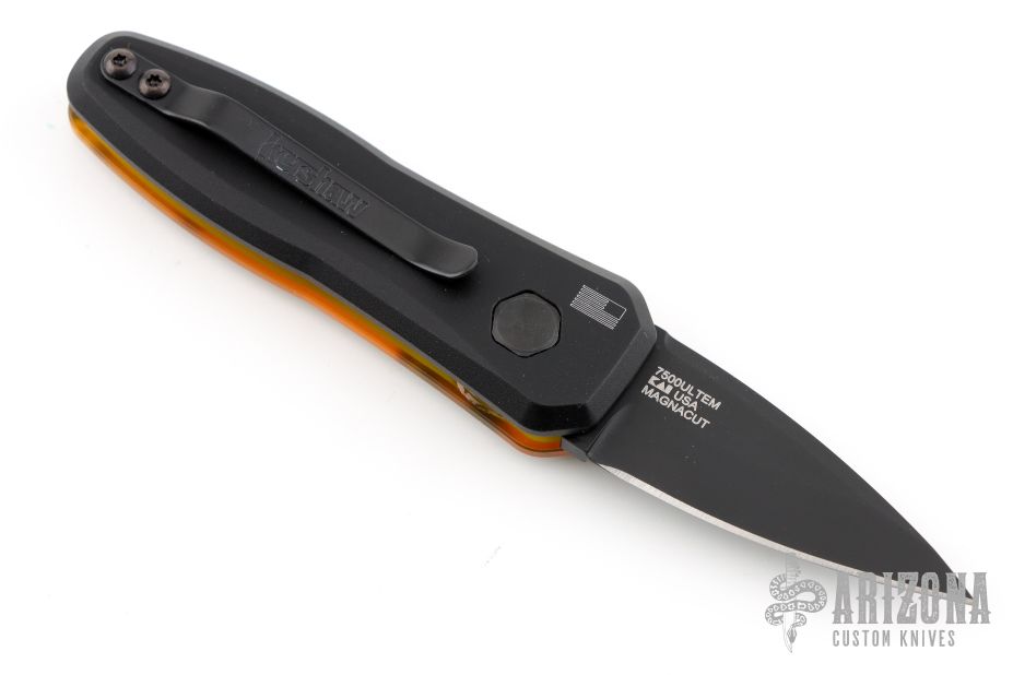 This Blade HQ exclusive Kershaw Launch 4 features a black Cerakote-finished CPM MagnaCut blade with an Ultem handle! Get to know this futuristic and just plain cool handle material in our Ultem blog!