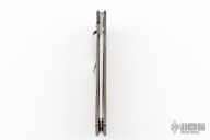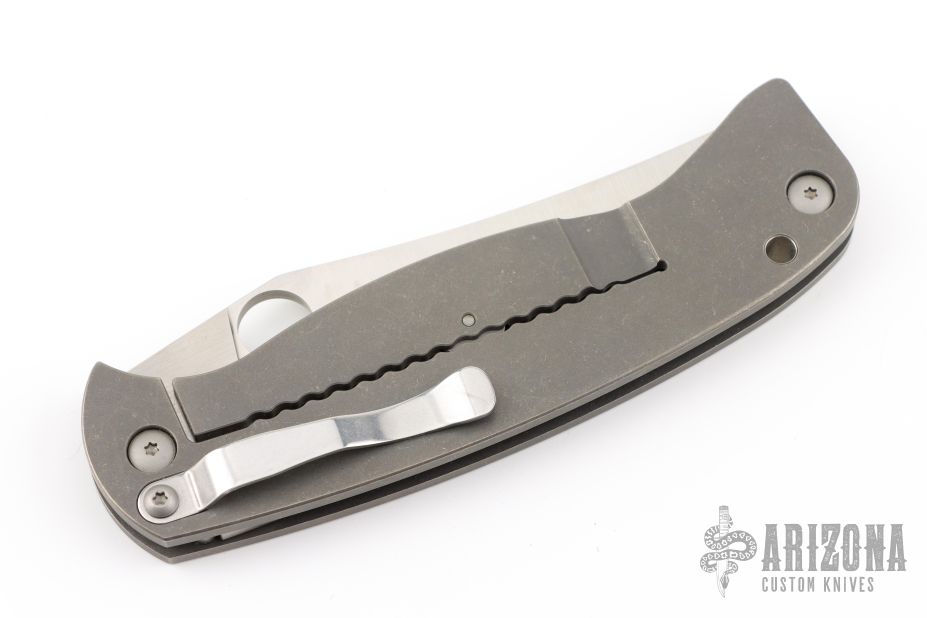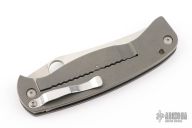 This K-2 Folder by Spyderco is a Farid Design, it features a satin finished clip point CPM 10V blade with thumbhole. The handle has a tumble finished titanium frame with a tip down stainless steel clip, lanyard hole at the butt. Nice detent, lockup and blade seating. Comes with original box and papers. Has a couple light scratches, otherwise excellent condition.